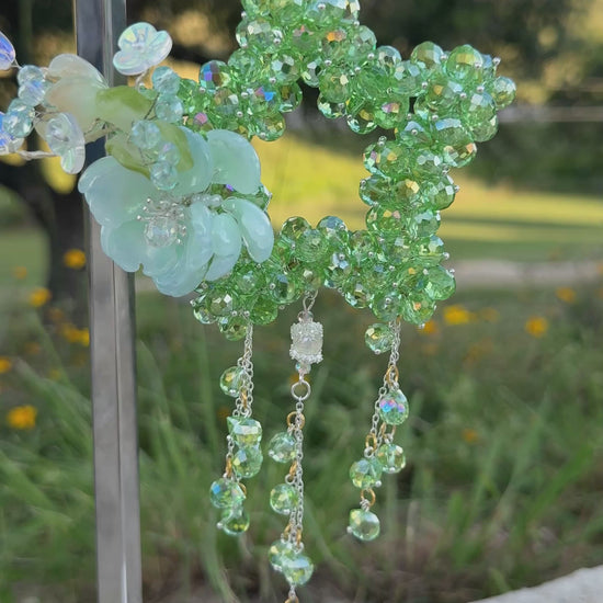 Shine bright with this handcrafted green star charm, a radiant piece designed to bring light and personality to your space. Made with shimmering faceted green glass beads, this charm features a soft jade-toned flower centerpiece and delicate translucent accents that add a natural, ethereal touch.